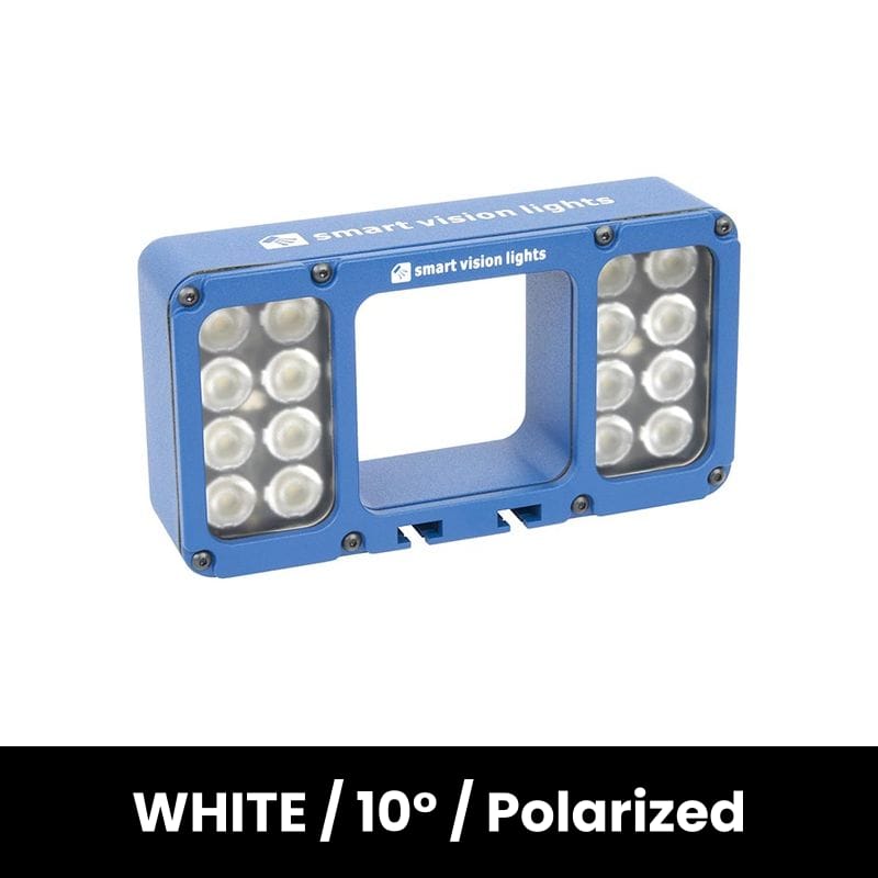 The JWL150-DO-WHI-N10-LPI bright field ring light features SVL's Deca OverDrive with up to 10x the standard light output. It is specially designed for the logistics industry to provide maximum illumination. It is compatable with many machine vision cameras and can be mounted directly to camera housings using the optional mounting plate accessories. It is designed to provide extra illumination where a camera's internal source is insufficient, and with a working range of 500mm to 2000mm it can provide illumination even over large distances. This fixture can be directly controlled via the camera's trigger output. The JWL150-DO-WHI-N10-LPI is in the WHITE color, features a lens beam angle of 10 Degree and is Polarized. The JWL150 series is available in White, 470nm Blue, 625nm Red, and 850nm IR wavelength variants and 10°, 14°, and 30° lens angles. It can be configured with a factory-installed polarizing filter for increased robustness compared to a field-installed filter.