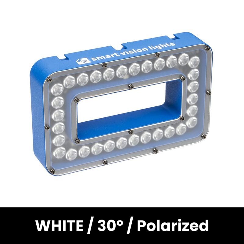 The JWL225-MD-WHI-W30-LPI bright field ring light features SVL's MultiDrive driver, allowing for constant on or overcurrent strobe. It is compatable with many machine vision cameras and can be mounted directly to camera housings using the optional mounting plate accessories. It is designed to provide extra illumination where a camera's internal source is insufficient, and with a working range of 500mm to 2000mm it can provide illumination even over large distances. This fixture can be directly controlled via the camera's trigger output. The JWL225-MD-WHI-W30-LPI is in the WHITE color, features a lens beam angle of 30 Degree and is Polarized. The JWL225 series is available in White, 470nm Blue, 625nm Red, and 850nm IR wavelength variants and 10°, 14°, and 30° lens angles. It can be configured with a factory-installed polarizing filter for increased robustness compared to a field-installed filter.