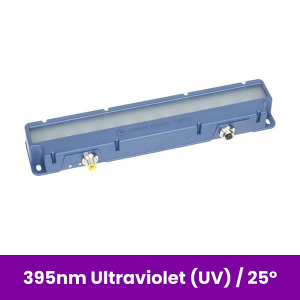 The L300G2-395-W Bar light from Smart Vision Lights is the next generation of the industry pioneering L300 series. The L300 featured SVL's integrated Smart Driver and could be strobed, but did not feature OverDrive Technology. The ODL300 featured Overdrive Technology but could not operate in constant on. This 2nd Generation Light combines both features by integrating patented Multi-Drive Technology. The L300G2 maintains the same dimensional package for a improved overall product when compared to L300 and ODL300 lights. This model is 300mm long and is in the 395nm Ultraviolet (UV) color. It features a lens beam angle of 25 Degree. The L300G2-395-W is Not Polarized. The L300G2 series is available in White, 365nm UV, 395nm UV, 470nm Blue, 530nm Green, 635nm Red, 850nm IR, and 940nm IR as standard variants but can also be made in SWIR variants. Further customizations can be performed upon request from Machine Vision Direct.