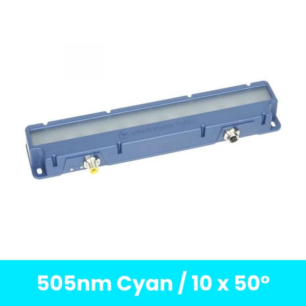 The L300G2-505-L Bar light from Smart Vision Lights is the next generation of the industry pioneering L300 series. The L300 featured SVL's integrated Smart Driver and could be strobed, but did not feature OverDrive Technology. The ODL300 featured Overdrive Technology but could not operate in constant on. This 2nd Generation Light combines both features by integrating patented Multi-Drive Technology. The L300G2 maintains the same dimensional package for a improved overall product when compared to L300 and ODL300 lights. This model is 300mm long and is in the 505nm Cyan color. It features a lens beam angle of 10 x 50 Degree. The L300G2-505-L is Not Polarized. The L300G2 series is available in White, 365nm UV, 395nm UV, 470nm Blue, 530nm Green, 635nm Red, 850nm IR, and 940nm IR as standard variants but can also be made in SWIR variants. Further customizations can be performed upon request from Machine Vision Direct.