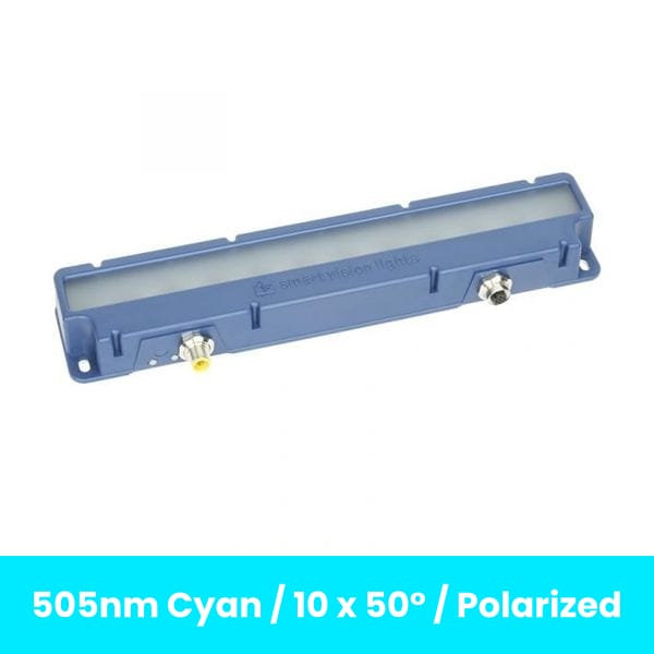 The L300G2-505-L-LPI Bar light from Smart Vision Lights is the next generation of the industry pioneering L300 series. The L300 featured SVL's integrated Smart Driver and could be strobed, but did not feature OverDrive Technology. The ODL300 featured Overdrive Technology but could not operate in constant on. This 2nd Generation Light combines both features by integrating patented Multi-Drive Technology. The L300G2 maintains the same dimensional package for a improved overall product when compared to L300 and ODL300 lights. This model is 300mm long and is in the 505nm Cyan color. It features a lens beam angle of 10 x 50 Degree. The L300G2-505-L-LPI is Polarized. The L300G2 series is available in White, 365nm UV, 395nm UV, 470nm Blue, 530nm Green, 635nm Red, 850nm IR, and 940nm IR as standard variants but can also be made in SWIR variants. Further customizations can be performed upon request from Machine Vision Direct.