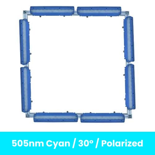 DFL-24-505-W-LPI | DFL-24 Dark Field Ring Light, 600mm x 600mm, 505nm Cyan, 30 Degree Lens, Polarized