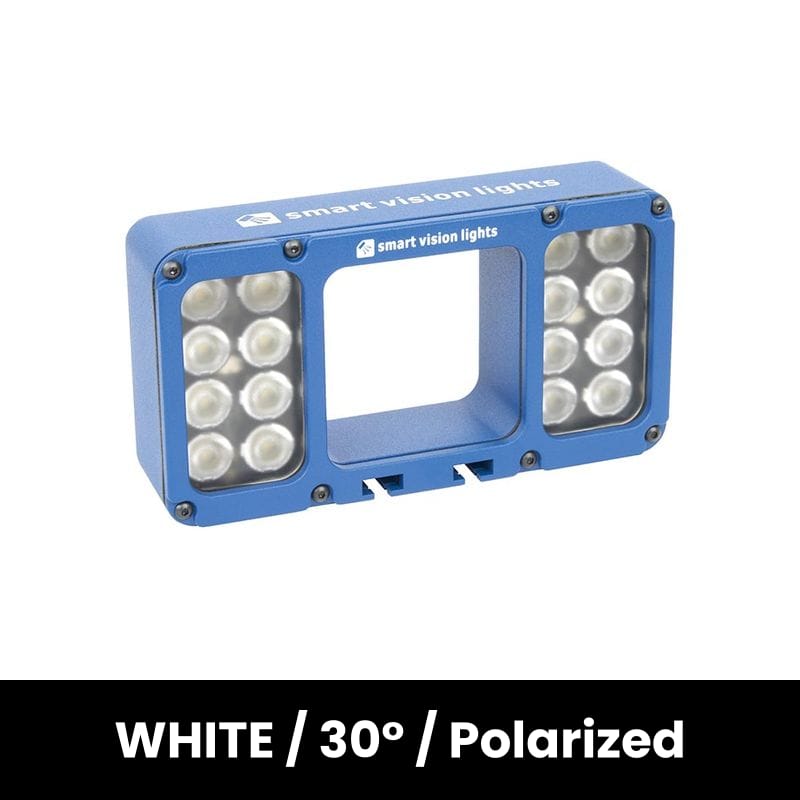 The JWL150-DO-WHI-W30-LPI bright field ring light features SVL's Deca OverDrive with up to 10x the standard light output. It is specially designed for the logistics industry to provide maximum illumination. It is compatable with many machine vision cameras and can be mounted directly to camera housings using the optional mounting plate accessories. It is designed to provide extra illumination where a camera's internal source is insufficient, and with a working range of 500mm to 2000mm it can provide illumination even over large distances. This fixture can be directly controlled via the camera's trigger output. The JWL150-DO-WHI-W30-LPI is in the WHITE color, features a lens beam angle of 30 Degree and is Polarized. The JWL150 series is available in White, 470nm Blue, 625nm Red, and 850nm IR wavelength variants and 10°, 14°, and 30° lens angles. It can be configured with a factory-installed polarizing filter for increased robustness compared to a field-installed filter.