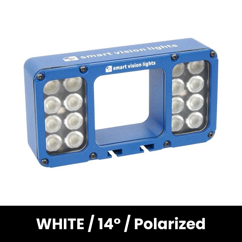 The JWL150-MD-WHI-LPI bright field ring light features SVL's MultiDrive driver, allowing for constant on or overcurrent strobe. It is compatable with many machine vision cameras and can be mounted directly to camera housings using the optional mounting plate accessories. It is designed to provide extra illumination where a camera's internal source is insufficient, and with a working range of 500mm to 2000mm it can provide illumination even over large distances. This fixture can be directly controlled via the camera's trigger output. The JWL150-MD-WHI-LPI is in the WHITE color, features a lens beam angle of 14 Degree and is Polarized. The JWL150 series is available in White, 470nm Blue, 625nm Red, and 850nm IR wavelength variants and 10°, 14°, and 30° lens angles. It can be configured with a factory-installed polarizing filter for increased robustness compared to a field-installed filter.