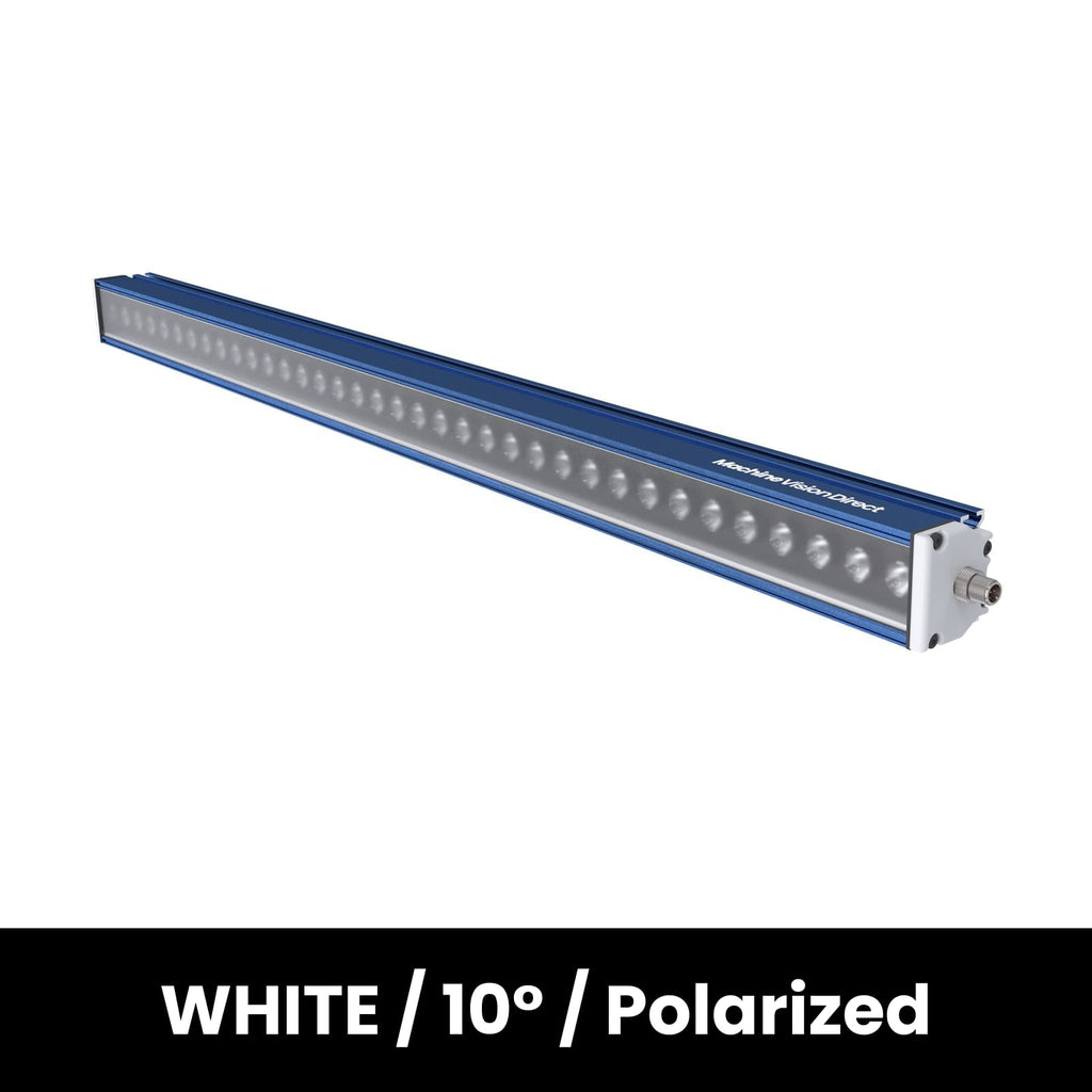 The LSR900-WHI-LPI Bar light from Smart Vision Lights is part of SVL's flagship full featured linear light series, the LSR. This machine vision light incorporates SVL's patented Multi-Drive Driver which allows for operation in both Constant-On or Overdrive Strobe operation modes in one convenient light. This model is 900mm long and is in the WHITE color. It features a lens beam angle of 10 Degree. The LSR900-WHI-LPI is Polarized. The LSR series is available in White, 365nm UV, 395nm UV, 470nm Blue, 530nm Green, 625nm Red, 850nm IR, and 940nm IR as standard variants. Further customizations can be performed upon request from Machine Vision Direct.